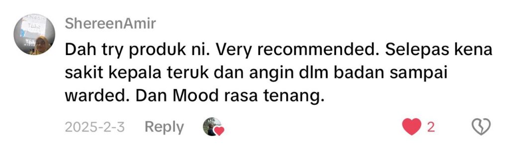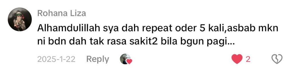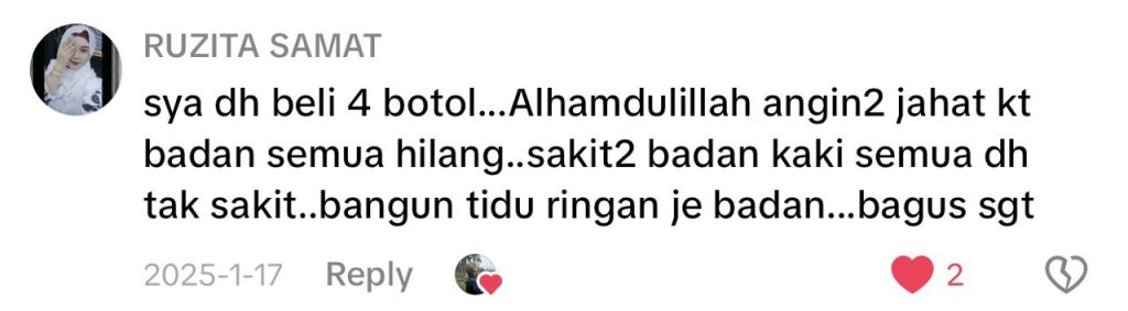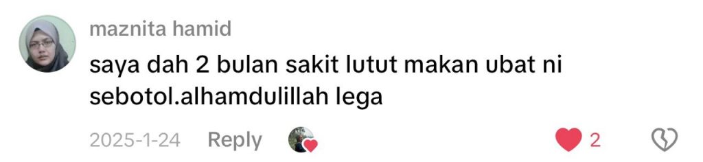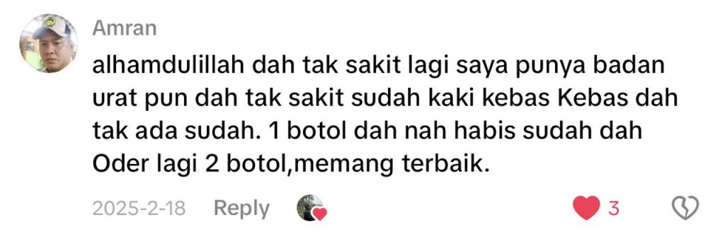 FEEDBACK : Sendi & saraf, sakit lutut, sakit pinggang, kepala, lenguh dan kebas badan